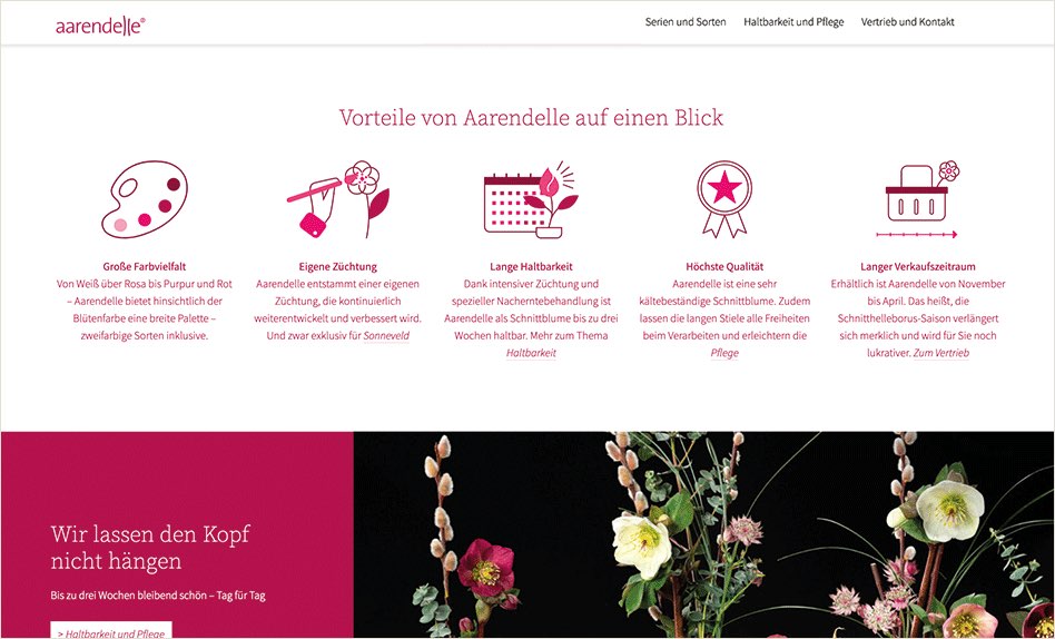 Heuger bringt mit dem Schnitthelleborus Aarendelle eine eigene Neuzüchtung auf den Markt, die das Herz von Blumenfreunden gleich aus drei Gründen höherschlagen lässt. Die Blüten kommen in besonderer Farbvielfalt daher. Zudem bleibt die Schnittblume besonders lange frisch und ist von November bis März erhältlich. Im Web bewundern kann man sie dank der von konzipierten, gestalteten und getexteten Website das ganze Jahr.