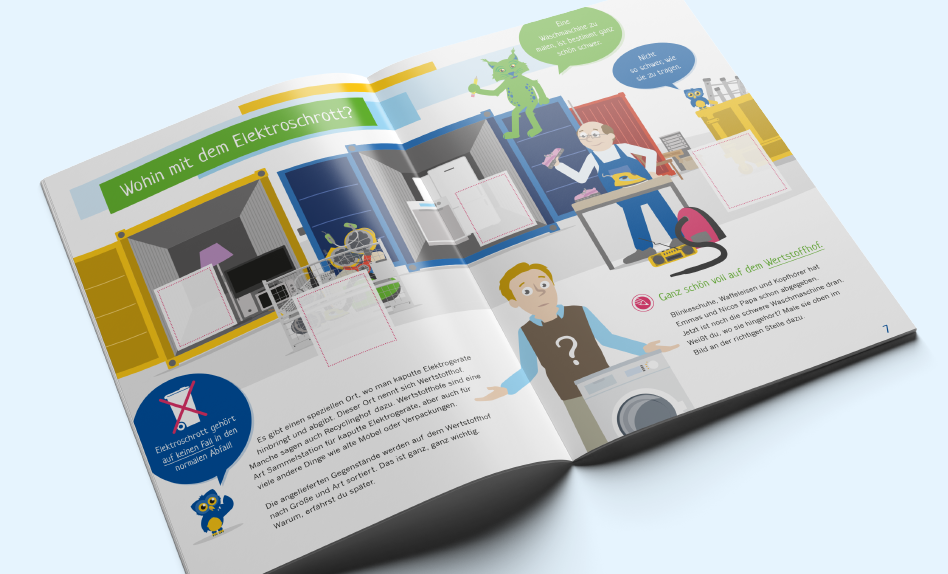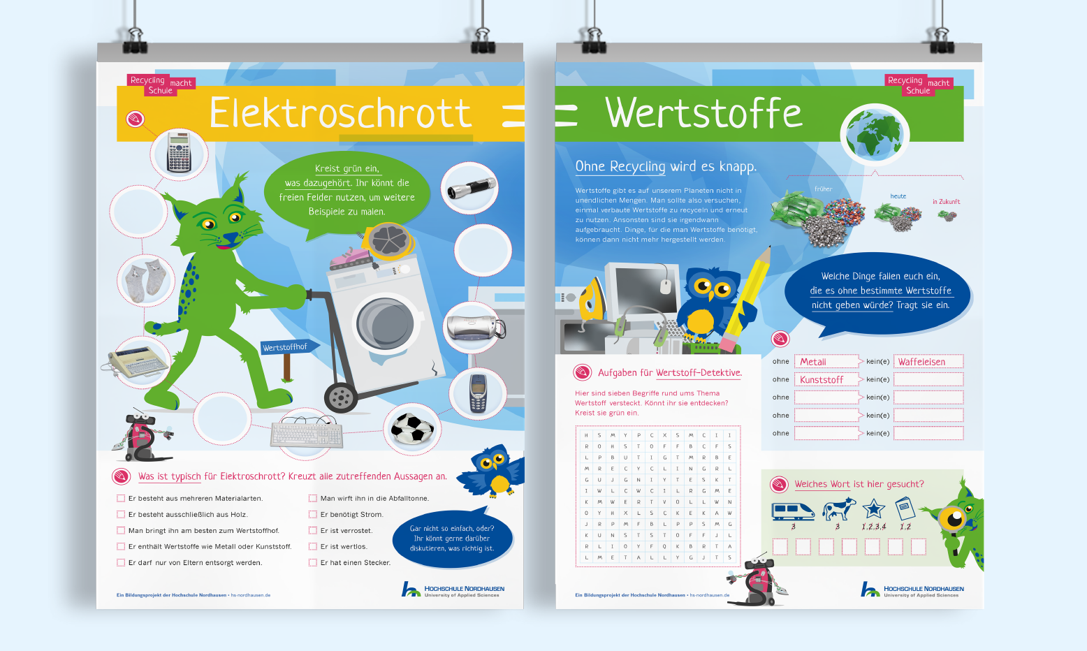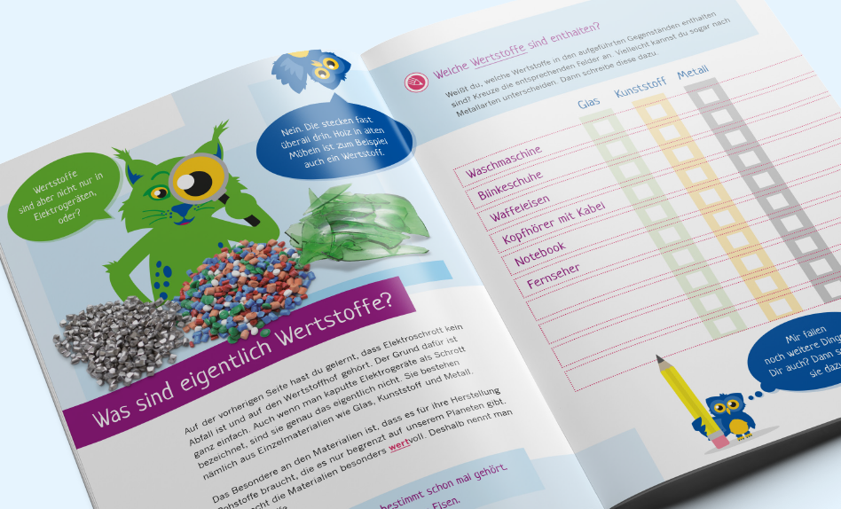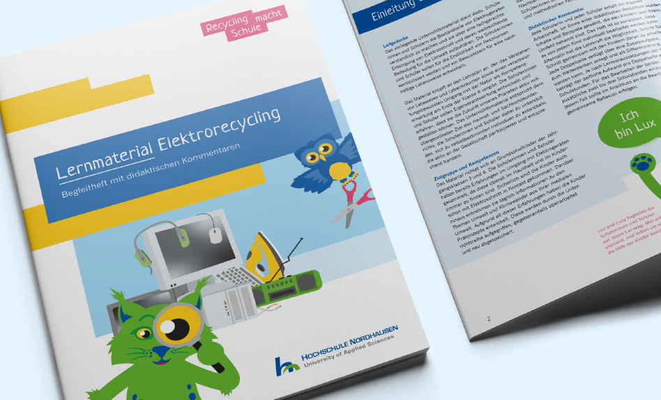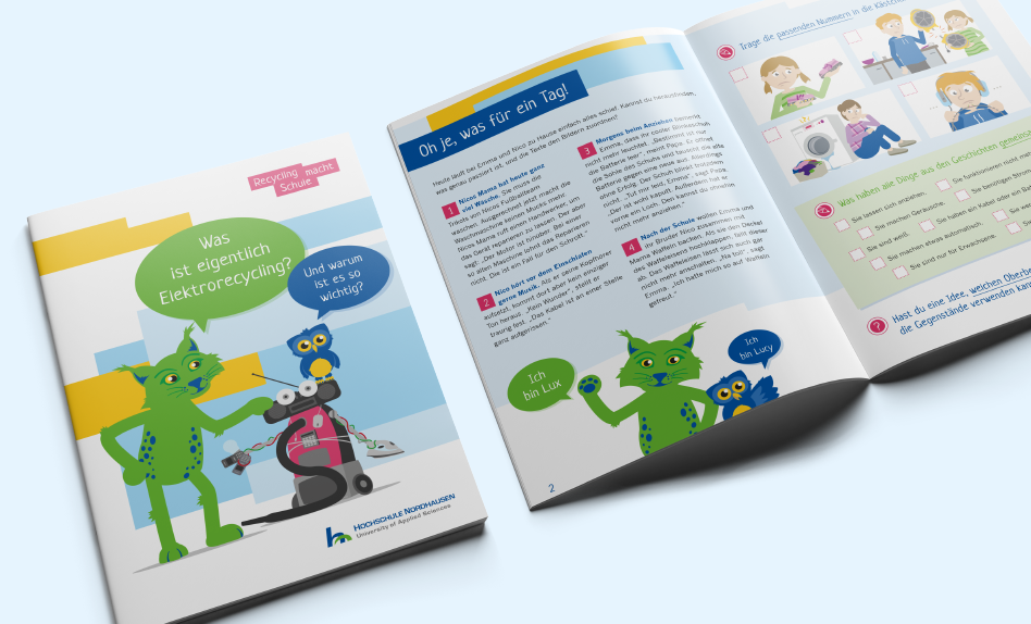 Die Hochschule Nordhausen macht etwas sehr Löbliches: Sie betreibt ein regionales Bildungsprojekt für Kinder zum Thema Wertstoffwende und Elektroschrottrecycling. Sie macht aber auch etwas sehr Schlaues: uns mit der Erstellung des Lehrmaterials zu beauftragen. Inklusive Schülerheft, ergänzenden Arbeitspostern und Lehrerinformationen.
