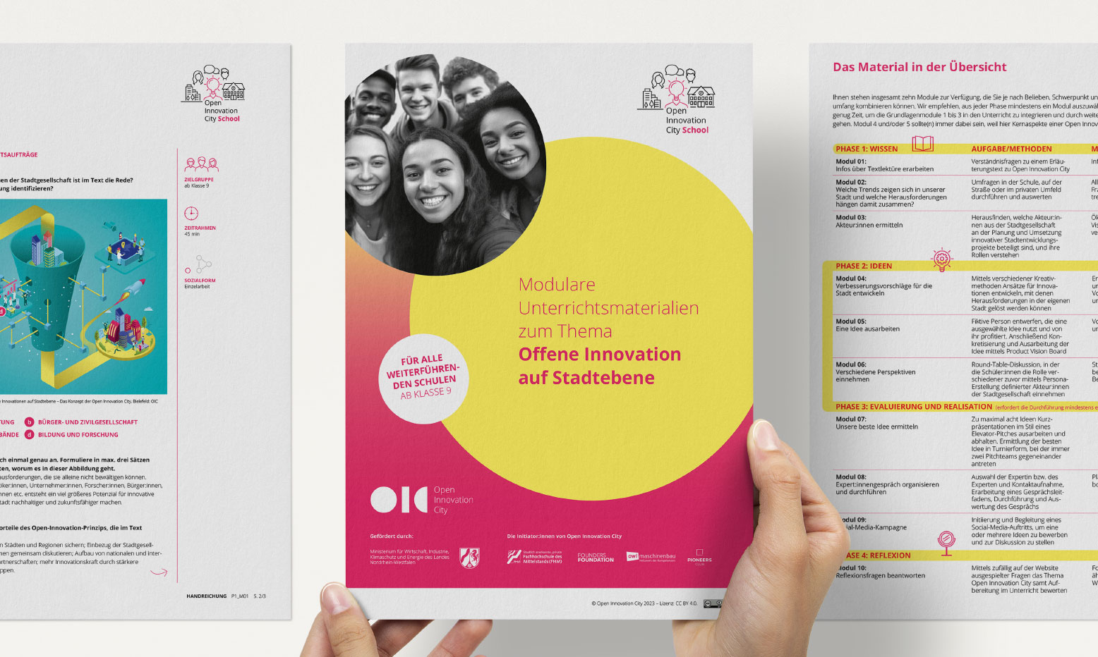 OPEN INNOVATION CITY (OIC) ist ein Bildungs- und Pilotprojekt aus Bielefeld, mit dem Schülerinnen und Schüler lernen, nach dem Prinzip der offenen Innovation Lösungen für Städte von morgen zu finden. Klingt ein wenig kompliziert, ist es ehrlich gesagt auch. Unserer Aufgabe bestand darin, das Ganze in eine unterrichtstaugliche Form zu bringen, die gleichermaßen Jugendliche und Lehrkräfte anspricht. Entstanden sind so umfassende, modulare Lernmaterialien samt Handreichungen. Auch ein Infoflyer zum Versand an Schulen sowie die Einbindung des Themas auf der OIC-Website durften natürlich nicht fehlen.