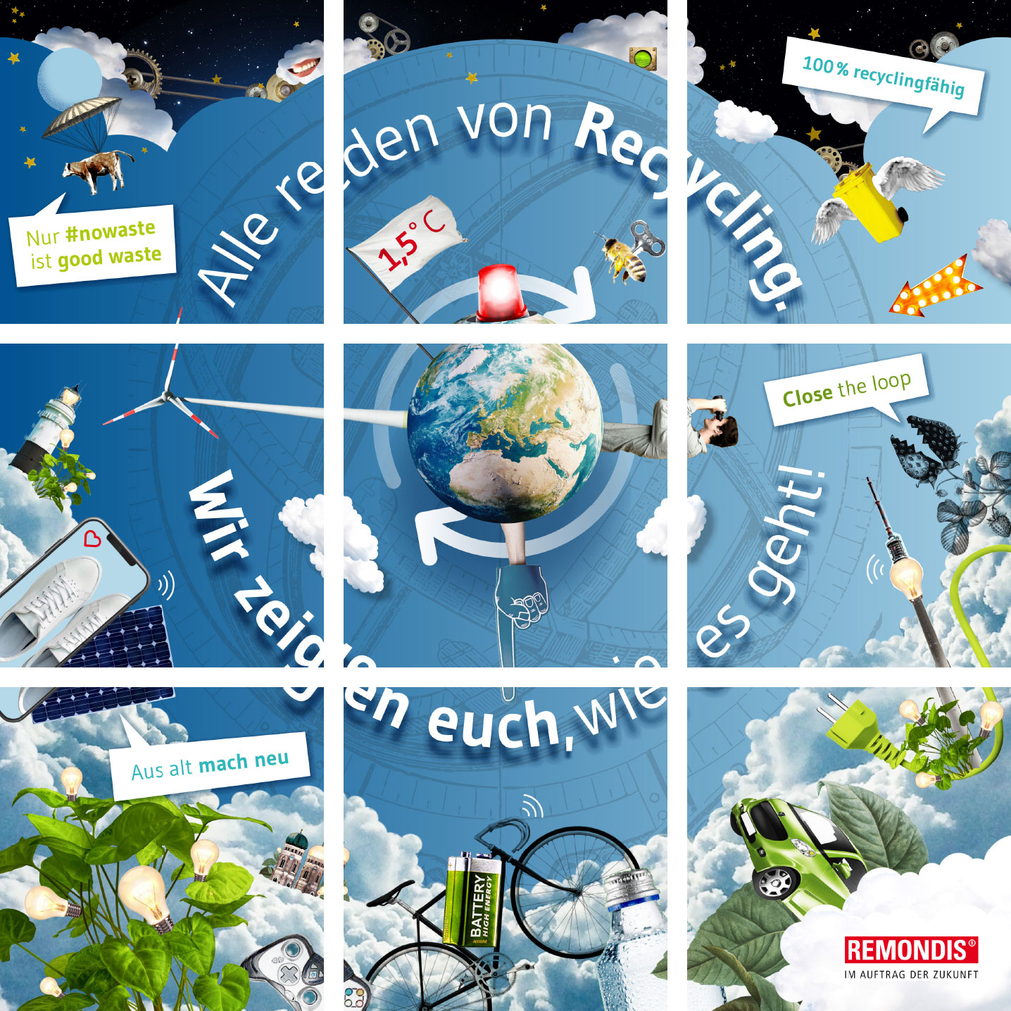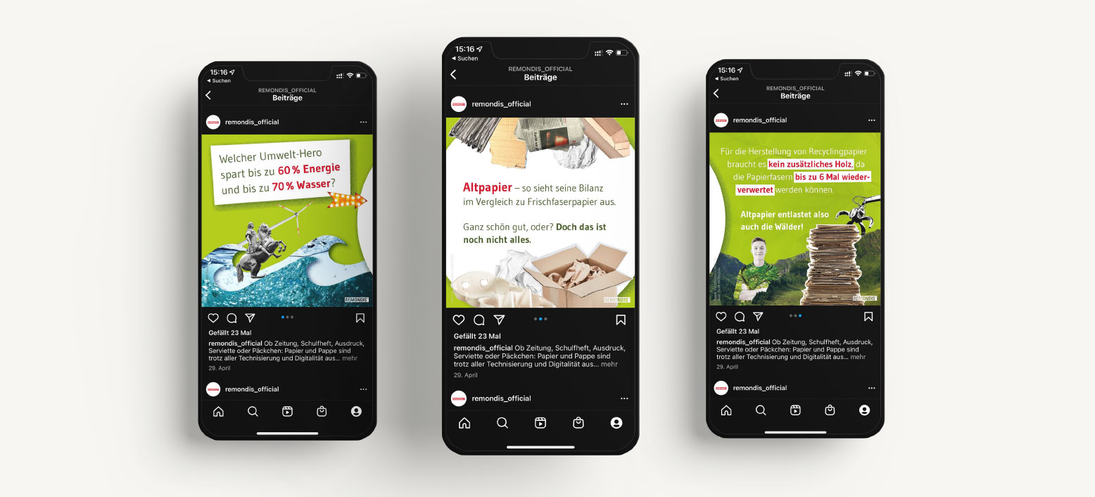 Beim von uns gestalteten Instagram-Auftritt dreht sich alles ums Thema Nachhaltigkeit. Die Betreuung des Accounts und die Erstellung der wöchentlichen Posts erfolgt in enger Abstimmung mit der Presseabteilung von REMONDIS.