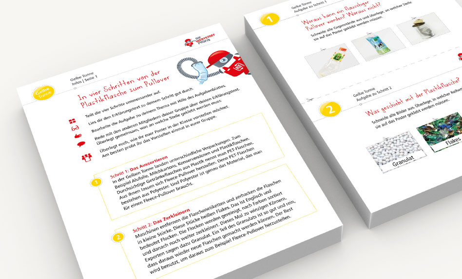 DIE WERTSTOFFPROFIS sind das erste ganzheitliche, deutschlandweite Bildungsprojekt zum Thema Ressourcenschonung und Recycling. In Zusammenarbeit mit Pädagogen haben wir altersgerechte Lernmaterialien für Kindergärten, Grundschulen und weiterführende Schulen entwickelt. Mit höchster Methodenvielfalt und nach neusten handlungsorientierten didaktischen Erkenntnissen. Von Stickerposter über Arbeitsheft bis zu großformatigen Gruppenpostern ist alles dabei. Inklusive umfangreicher Begleithefte für Erzieher bzw. Lehrer.