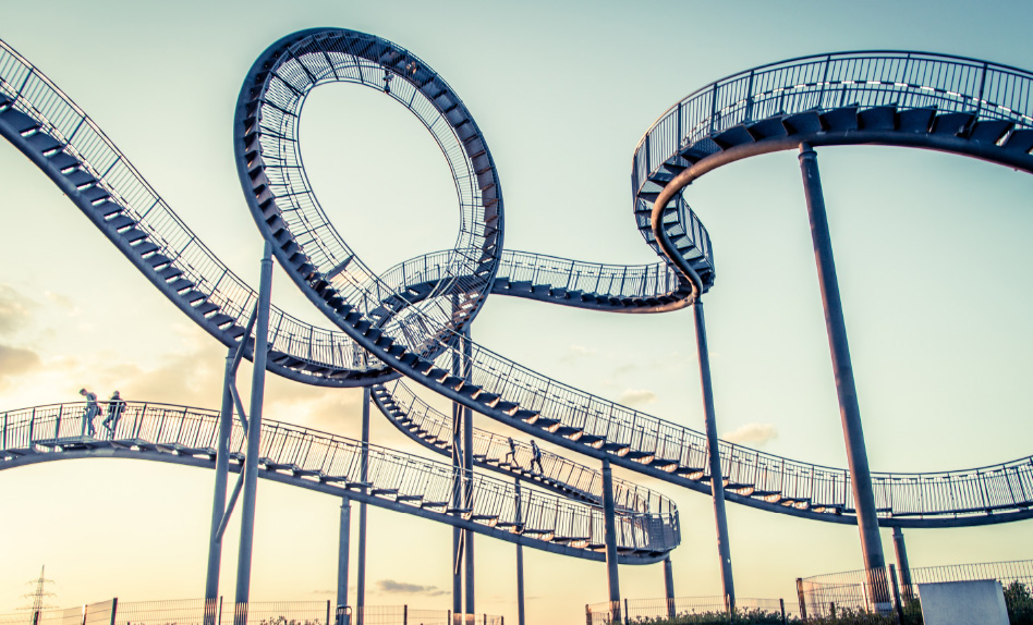 Achterbahn nachempfundene, begehbare Großskulptur auf der Heinrich-Hildebrand-Höhe in Duisburg-Angergausen.